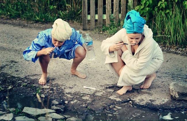 Vệ sinh cá nhân ngay ở "ổ voi" trước nhà.