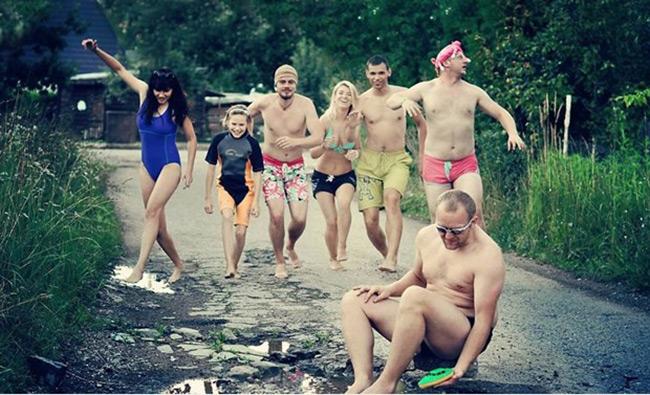 Cả nhà cùng nhau ra "bãi biển" nghịch.