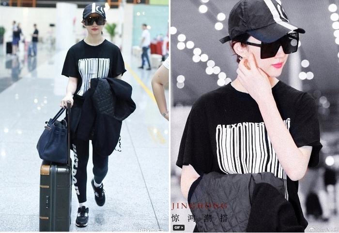 Là ngôi sao nổi tiếng hàng đầu xứ Trung, sở hữu khối tài sản khổng lồ nhưng gu thời trang của Lưu Diệc Phi lại khá đơn giản. Set đồ cô diện ra sân bay mới đây nhìn thì đơn giản nhưng giá trị của nó phải lên tới 320 triệu đồng. Áo mà Lưu Diệc Phi diện là 1 thiết kế của Alexander Wang giá khoảng 5,7 triệu đồng, quần nỉ và giày thể thao của Nike có giá lần lượt 1,4 triệu và 2 triệu đồng. Cô đeo mẫu kính gọng vuông sành điệu của Saint Laurent hơn 11 triệu đồng. Bên cạnh đó, cô còn mang theo chiếc túi xách Hermes Birkin đắt đỏ có giá khoảng 300 triệu đồng.