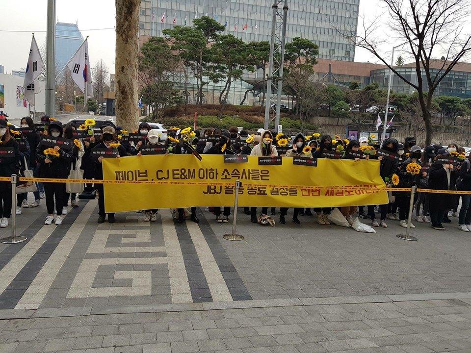Người hâm mộ JBJ biểu tình trong im lặng trước cửa trụ sở Loen nhằm yêu cầu xem xét lại việc nhóm bất ngờ tan rã