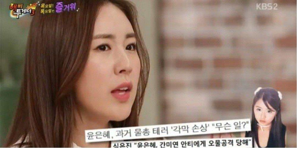 Xuất hiện trên chương trình "Happy Together 3" mới đây, nữ ca sĩ Kan Mi Yeon chia sẻ rằng Yoon Eun Hye gần như bị mất thị lực bởi vì một antifan. Cô tiết lộ thêm rằng bản thân cô cũng bị đe dọa bởi dao và thư viết bằng máu