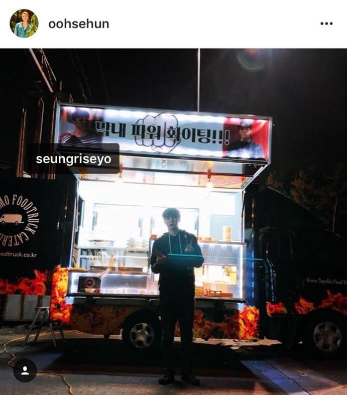 Em út của BIGBANG Seungri gửi xe tải đồ ăn tới trường quay web drama “Dokgo Rewind” để cổ vũ em út của EXO Sehun