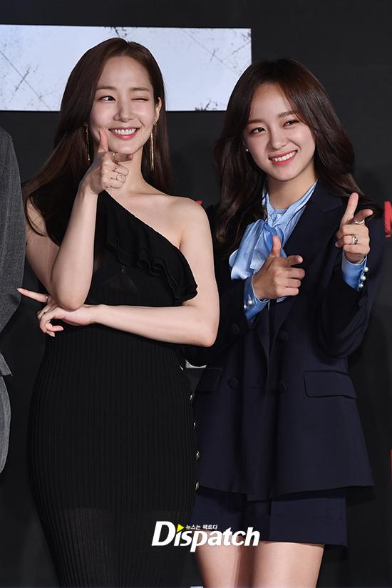 Park Min Young và đàn em Se Jeong tại họp báo show truyền hình "Culprit Is You/ Busted". Show bắt đầu chiếu trên Netflix từ ngày 4/5. Chương trình còn có sự tham gia của các sao Hàn khác như Yoo Jae Suk, EXO Sehun, Kwangsoo,...