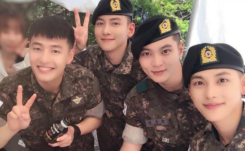 Dàn mỹ nam F4 phiên bản quân đội Kang Ha Neul, Ji Chang Wook, Joo Won và Im Siwan chụp hình trong hậu trường Lễ kỉ niệm ngày Thương binh liệt sĩ Hàn Quốc