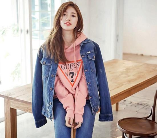 Mỹ nhân của Miss A - Suzy cũng khiến fan không thể rời mắt khi diện chiếc áo ấm màu hồng đóng quảng cáo.