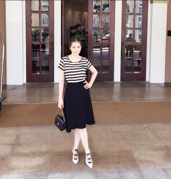 sự chú ý của người hâm mộ. Cô kết hợp cùng bộ trang phục đơn giản gồm chân váy