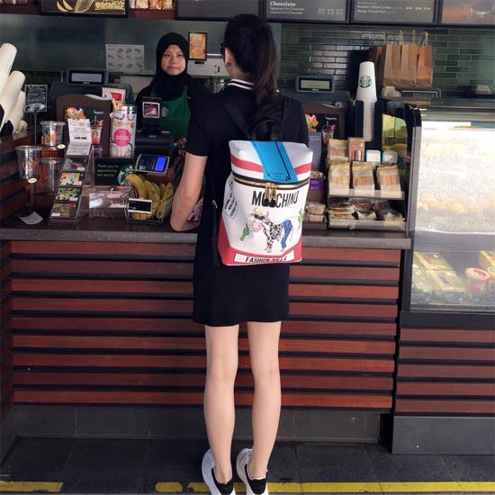 Ba lô họa tiết đáng yêu hiệu Moschino giúp nữ diễn viên Gió nghịch mùa
