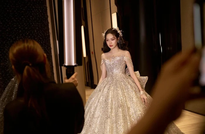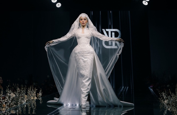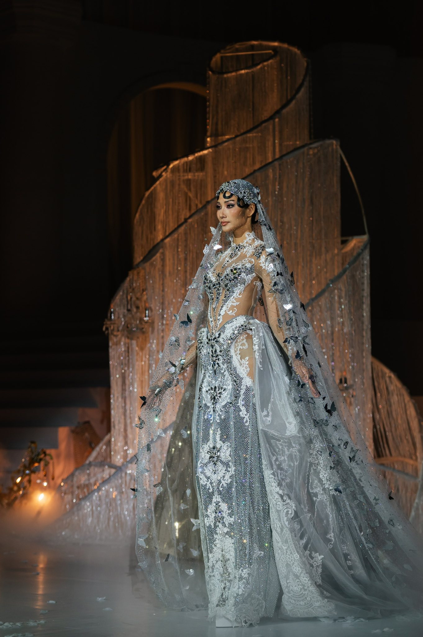 Kỳ Duyên đẹp tựa "nữ thần" khi diện váy cưới đảm nhận vai trò vedette show của NTK Chung Thanh Phong.Hoàng Thùy phô diễn thần thái kiêu kì lẫn nhan sắc kiều diễm khi diện đầm cưới xuyên thấu với phần voan dài quét đất.