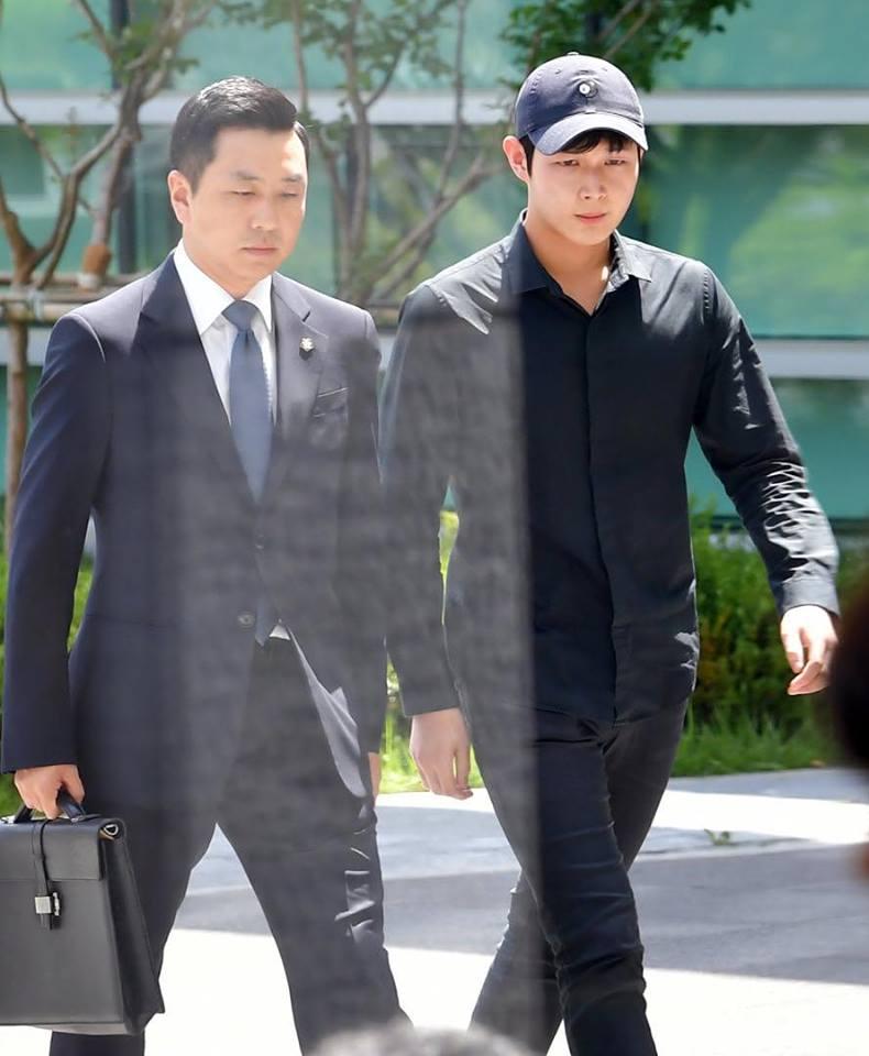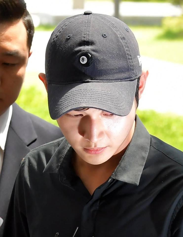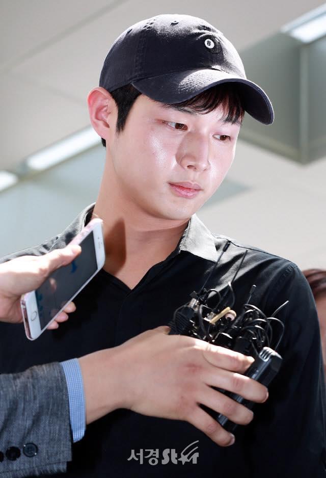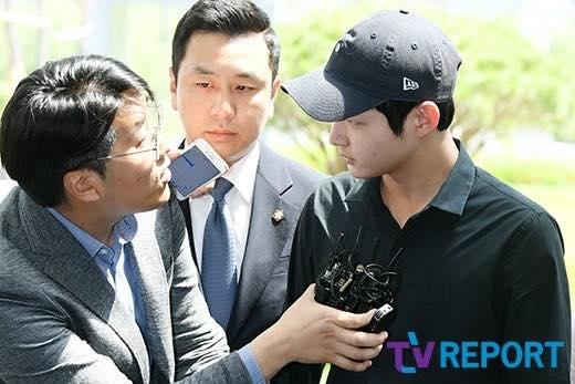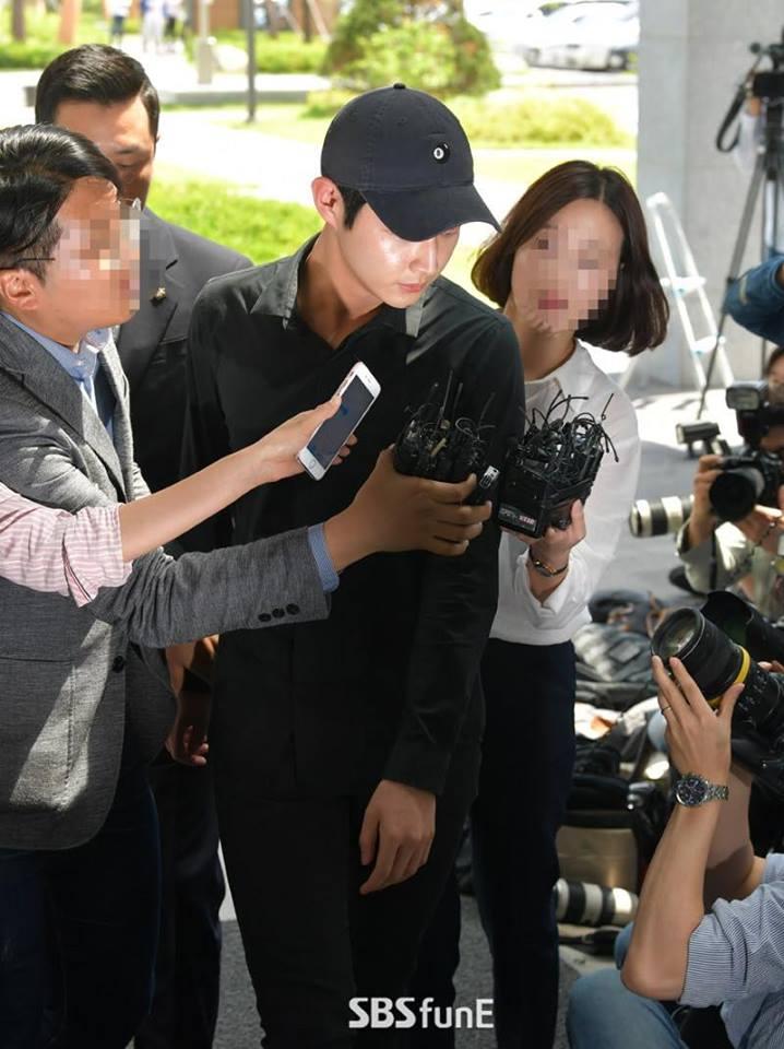 Nam diễn viên sinh năm 1997 xuất hiện cùng luật sư, anh liên tục cúi đầu và từ chối trả lời mọi câu hỏi của phóng viên.