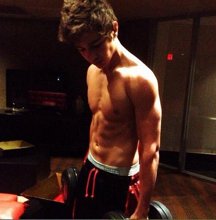 - chàng ca sĩ 19 tuổi hiếm khi cởi áo khoe cơ thể.