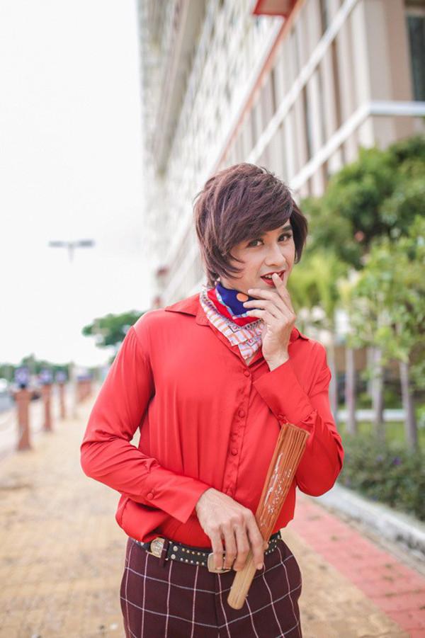 Trong bộ phim hài ''Chàng men nàng bóng'', Ngô Kiến Huy cũng có cảnh giả gái. Diễn xuất tự nhiên trong tạo hình phụ nữ của anh đem lại nhiều bất ngờ cho khán giả.
