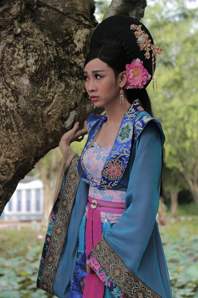 Hải Triều hoá thân vô cùng xuất sắc với tạo hình mỹ nhân cổ trang trong "Nam phi liên hoàn kế". Khuôn mặt nhỏ, thon cùng đôi môi đầy đặn là một trong những lợi thế giúp nam diễn viên hóa thân thành công hình ảnh giai nhân.