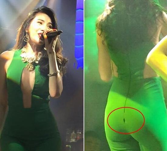 Nữ ca sĩ Thu Thủy đang biểu diễn sung trên sân khấu thì khóa quần