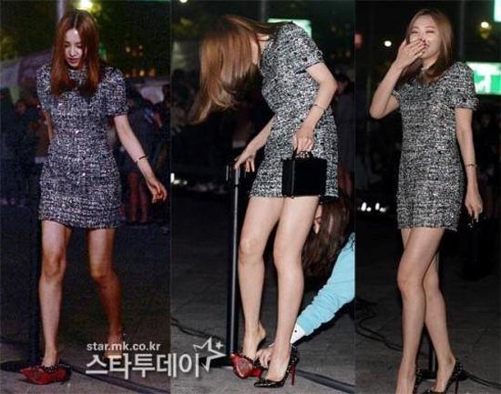 Kang Sora gặp tai nạn rách váy ngay trên thảm đỏ. Chẳng còn cách nào khác, cô phải