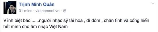 Cùng rất nhiều lời chào tiễn biệt cùng bội phục tài năng của các lớp nghệ sĩ dành cho cố nhạc sĩ.