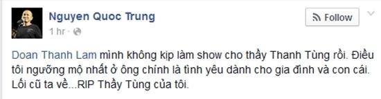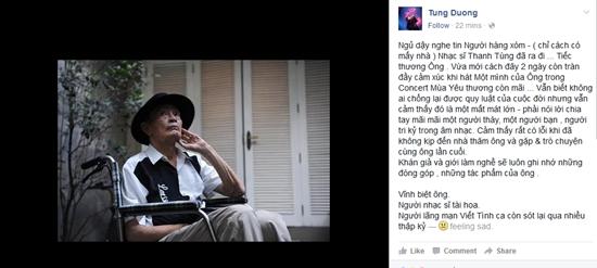 (2Sao) - Rất nhiều nghệ sĩ đã bày tỏ niềm tiếc thương vô hạn trước sự ra đi của NS Thanh Tùng.