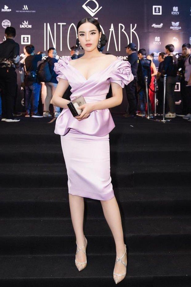 Tông màu tím lavender tôn lên làn da trắng của Kỳ Duyên khi xuất hiện tại show diễn của NTK Đỗ Long. Điểm nhấn của bộ trang phục là phần tay áo được tạo khối thành hình bông hoa cách điệu, gây ấn tượng khó phai với người đối diện.