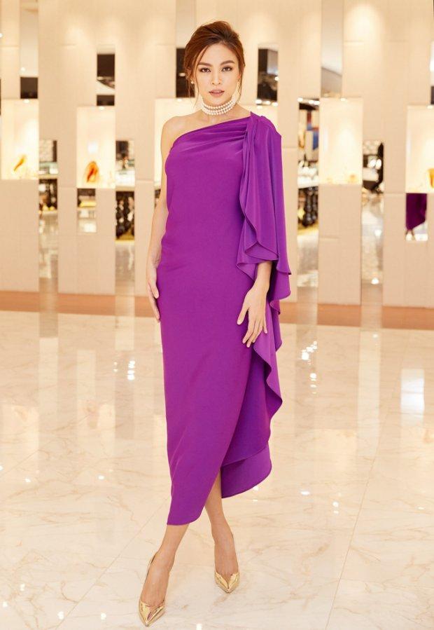 Trong một dịp khác, nữ diễn viên “Sứ mệnh trái tim” diện bộ váy được thiết kế lệch vai màu tím khá kín đáo, Angela Phương Trinh vẫn quyến rũ “gây thương nhớ” cho người đối diện thay vì mặc đồ khoe triệt để da thịt.