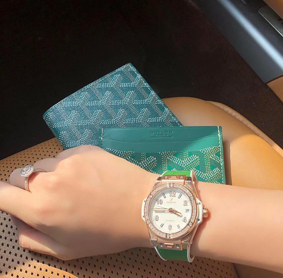 Đặc biệt, điểm nhấn nâng tầm set đồ chính là chiếc đồng hồ Hublot Big Bang One Click có giá lên đến 480 triệu đồng.