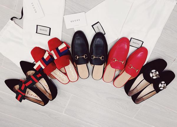 Đánh dấu sinh nhật tuổi 30, Bảo Thy tự thưởng cho mình một loạt các items đồ hiệu. Nữ ca sĩ sắm một lúc 5 đôi giày thương hiệu Gucci có giá mỗi đôi từ 16-23 triệu đồng.