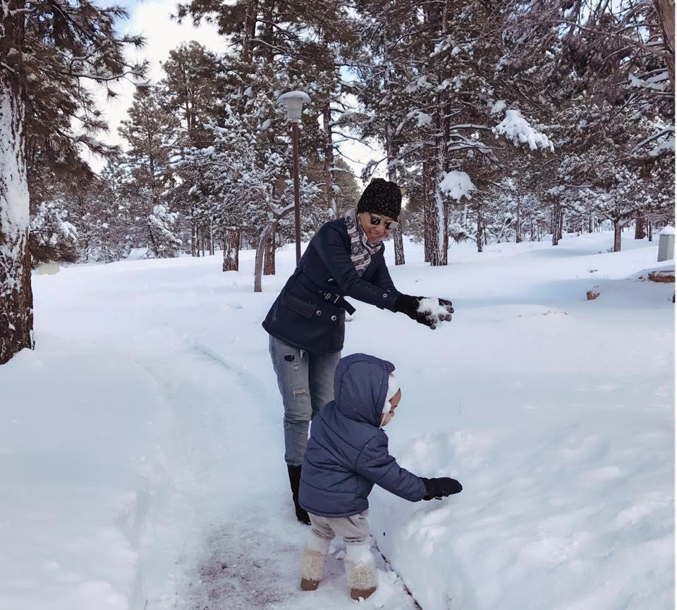 Thu Minh cùng con trai vui đùa nghịch tuyết ở xứ người