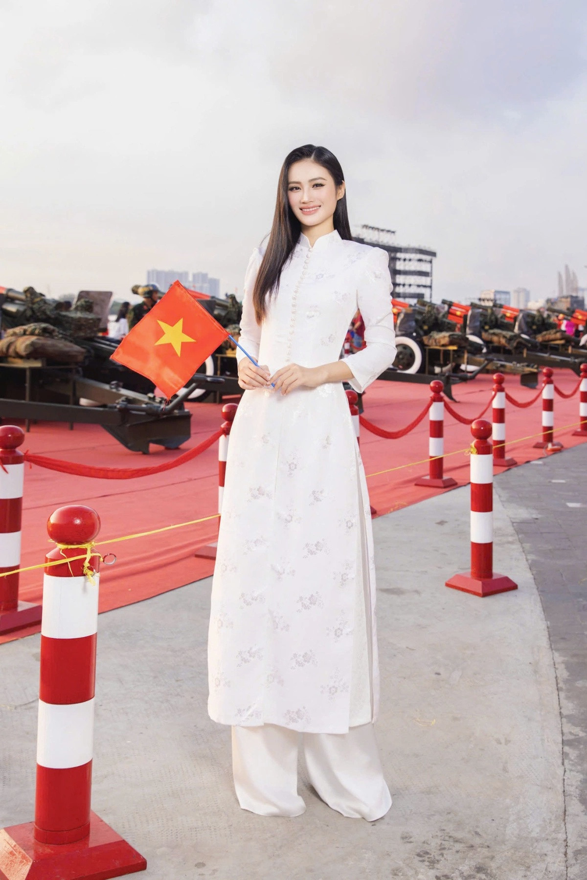 Mới đây, Phương Anh Đào gây sốt cõi mạng khi xả bộ ảnh mặc áo dài trắng, đeo khăn rằn hưởng ứng lễ 30/4 - 1/5.Nữ diễn viên khoe visual bừng sáng với nụ cười "tỏa nắng" khi đến thăm Trận địa pháo tại bến Bạch Đằng (TP.HCM).Phương Anh Đào được cư dân mạng nhận xét nhan sắc không tì vết, đỉnh của chóp, lấn át cả dàn hoa hậu. Vẻ đẹp dịu dàng, thanh khiết của cô như hòa quyện vào không khí trang trọng đậm màu lịch sử, trở thành điểm nhấn khiến bao con tim thổn thức.Được biết, nữ diễn viên cũng sinh nhật vào ngày 30/4 nên bộ ảnh này càng trở nên ý nghĩa. Nụ cười của mỹ nhân phim "Mai" được nhận xét đẹp như ngày giải phóng.Hoa hậu Ý Nhi ghi lại khoảnh khắc đáng nhớ tại Dinh Độc Lập và UBND thành phố.Hoa hậu Thanh Thủy khoe nhan sắc rạng rỡ với áo dài, tay cầm cờ đỏ sao vàng. Cô check-in tại khu vực trưng bày, nơi có rất nhiều kỷ vật nhắc nhớ về chiến thắng lịch sử 50 năm trước của dân tộc ta. Trên trang cá nhân, người đẹp viết: "Chào mừng Kỷ niệm 50 năm Ngày Giải phóng miền Nam, thống nhất đất nước (30/4/1975-30/4/2025)".Bày tỏ tình yêu quê hương đất nước, Sam viết trên trang cá nhân: "Kiếp sau xin lại là người Việt Nam!". Hoa hậu Khánh Vân nhờ ông xã nhiếp ảnh gia thực hiện bộ ảnh ý nghĩa. Chân dài cũng diện áo dài trắng tinh khôi và dùng khăn rằn làm điểm nhấn.Hoa hậu Tiểu Vy có những hình ảnh giản dị nhưng toát lên vẻ đẹp trong sáng của người con gái Việt Nam.Tham gia chương trình nghệ thuật chào mừng đại lễ Hẹn ước Bắc - Nam, ca sĩ Hòa Minzy cũng chọn cho mình trang phục áo dài. Người đẹp tự hào và xúc động khi được là con cháu Việt Nam. Sĩ Thanh khoe vẻ đẹp nền nã trong tà áo dài trắng.