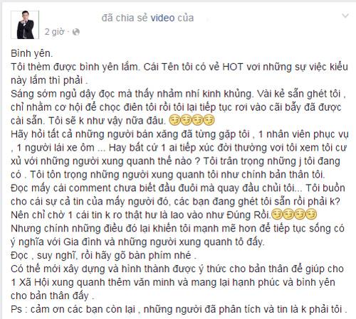 Tuấn Hưng lên tiếng trước tin đồn tát nhân viên bán xăng.