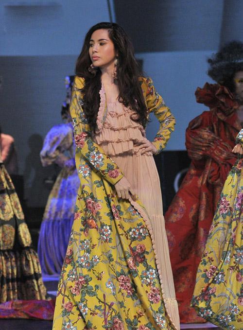 Yến Trang cũng rất tự tin sải bước trên sàn catwalk dù sở hữu chiều cao hạn chế