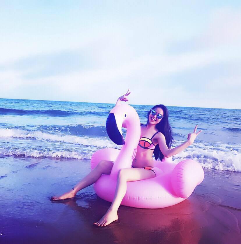Sella Trương chụp ảnh với thiên nga hồng điệu đà đáng yêu