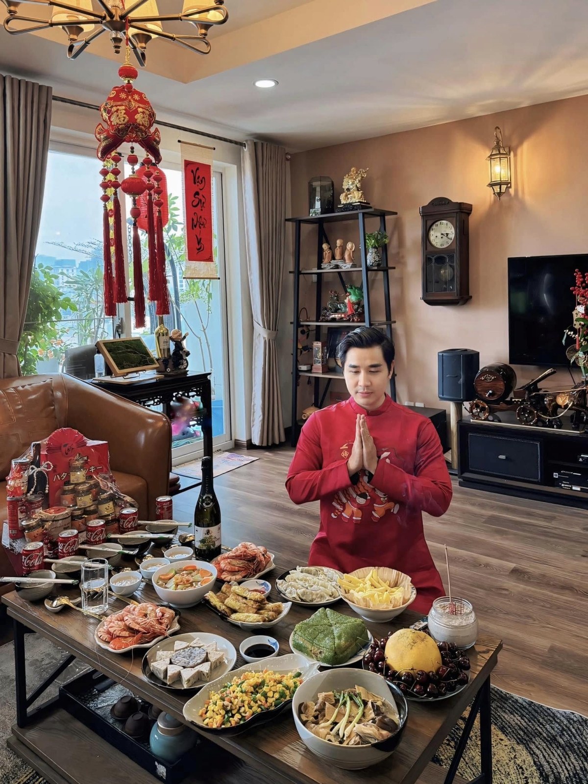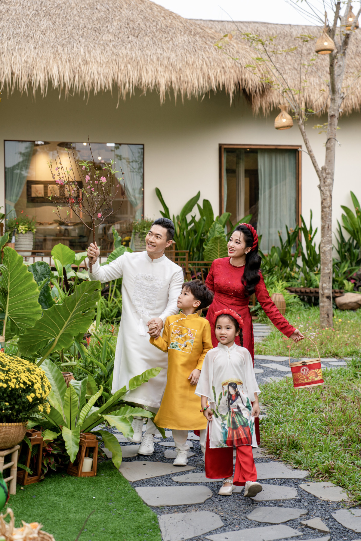Hồ Ngọc Hà cho biết vào các dịp lễ, Tết, cô thường lên ý tưởng làm đẹp không gian sống. Trước cửa biệt thự, giọng ca 41 tuổi đặt những chậu hoa tươi và bài trí lồng đèn, pháo đỏ, câu đối... tạo cảm giác ấm cúng.Vào ngày cận Tết Nguyên đán, ca sĩ Vy Oanh cùng ông xã đại gia và ba con 'lên đồ', xuống phố du xuân, chụp ảnh mừng Tết Ất Tỵ. Gia đình Vy Oanh mặc đẹp chụp ảnh trong phòng khách căn biệt thự ở Thành phố Thủ Đức. Ca sĩ cho biết năm nay cô chuẩn bị Tết sớm nên đỡ cập rập hơn mọi năm.Vy Oanh cho biết hai vợ chồng vừa đưa các con xuống phố dạo chơi, ngắm cảnh TP HCM nhộn nhịp những ngày cuối năm Giáp Thìn.Quốc Cơ cho biết gia đình anh vừa thực hiện bộ ảnh mừng năm mới với trang phục áo dài truyền thống. Bé Dâu hơn 4 tuổi, tập xiếc với bố từ nhỏ nên rất dạn dĩ. Quốc Cơ ngẫu hứng biểu diễn động tác nâng đỡ con gái đứng trên một tay bố khi chụp ảnh Tết.Hồng Phượng cho biết vợ chồng luôn đề cao các giá trị văn hóa, truyền thống của dân tộc nên cuối năm dù bận nhiều việc họ vẫn sắp xếp đưa con đi chơi, chụp ảnh để hai bé hiểu hơn về nét đẹp văn hóa Việt Nam, biết yêu quê hương, đất nước từ nhỏ.Trong khi các nghệ sĩ khác súng sính áo dài du xuân thì Bảo Thanh diện trang phục cực giản dị khoe sổ đỏ. Nữ diễn viên cho biết năm qua đã làm việc rất chăm chỉ và đây là thành quả xứng đáng.