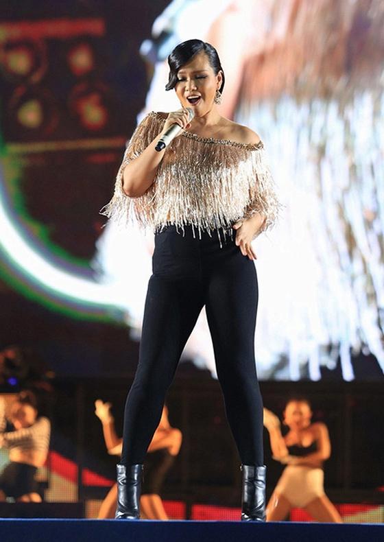 Bộ đồ họa tiết của Hari Won vốn đã rối mắt. Cô lại cộng thêm phần tua
