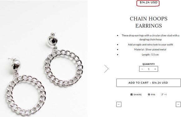 Họa tiết xích uốn vòng và không có đá trang trí, đôi khuyên tai phù hợp cho những cô nàng quyến rũ và phóng khoáng. Hơn nữa được sự lăng xê của Tóc Tiên và Thanh Hằng đã giúp cho mẫu hoa tai này trở thành kiểu dáng hot và được tìm kiếm nhiều trong năm nay