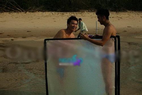 Tuấn Hưng lợi dụng trời tối để thay quần nhưng anh lại không để ý có nhiều đèn xe đang rọi thẳng vào mình?