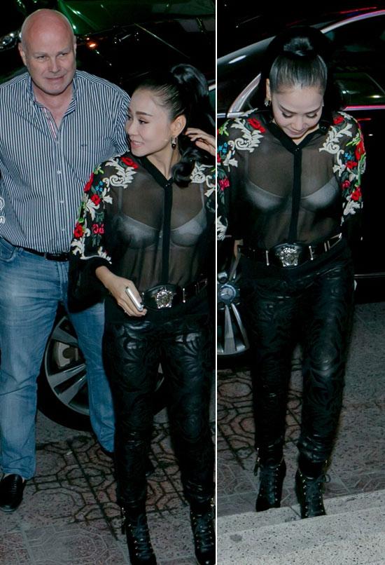 cách mặc áo lưới mỏng như "tơ", lộ nội y làm cô thiếu đi sự tinh tế.