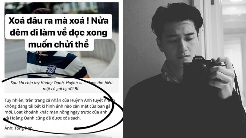 Khẳng định bài viết "sai tùm lum", ngôi sao Cầu Vồng tình yêu cũng bác thông tin cho rằng anh đã xóa hết hình ảnh mặn nồng cùng Hoàng Oanh sau khi tiết lộ đang tìm hiểu một cô gái người Bỉ. "Xóa đâu ra mà xóa, nửa đêm đi làm về đọc xong muốn chửi thề", tài tử sinh năm 1992 bức xúc.