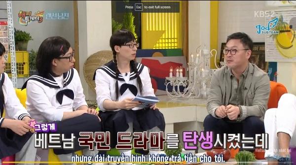 “Bộ phim là một thành công lớn nhưng đài truyền hình không trả tiền cho tôi” - ông Kim cho hay. Cũng theo lời đạo diễn này, 11 năm trước, ông từng lên đường sang Việt Nam để thực hiện sản xuất một bộ phim truyền hình hợp tác Việt - Hàn. Ông Kim nhận kịch bản từ Hàn Quốc và dịch sang tiếng Việt đồng thời ở lại Việt Nam tham gia quá trình thực hiện bộ phim cùng các diễn viên.