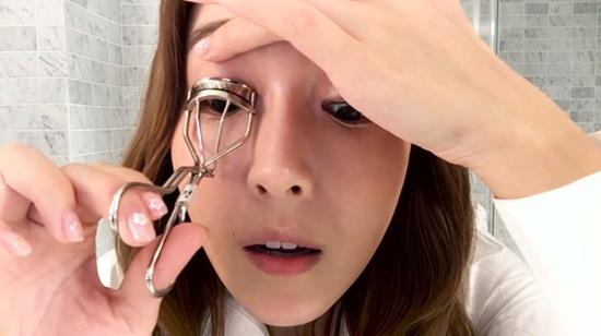 Bước 12: uốn mi cho cong với cây kẹp mi. Mẹo của Jessica là hơ nóng cây kẹp mi dưới máy sấy trong vài giây để kẹp mi được cong hơn và giữ mi cong được lâu hơn.