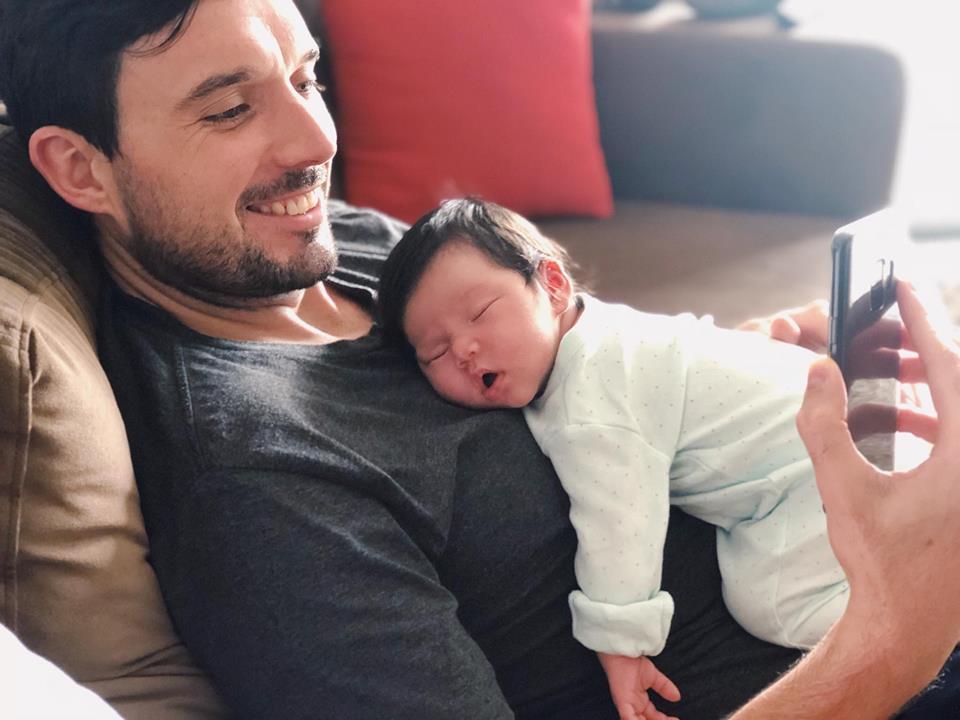Sau sinh, trên trang cá nhân cựu host Vietnam's Next Top Model thường xuyên khoe ảnh tiểu công chúa cùng ông xã. Trong vòng tay của bố, con gái Hà Anh ngoan ngoãn nằm ngủ khiến người xem vô cùng thích thú.