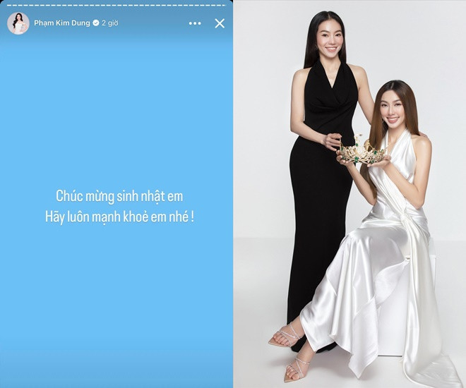 Trước đó, "bà trùm hoa hậu" Phạm Kim Dung dù không nhắc tên nhưng cũng ẩn ý gửi lời chúc mừng sinh nhật đến hoa hậu Thùy Tiên.