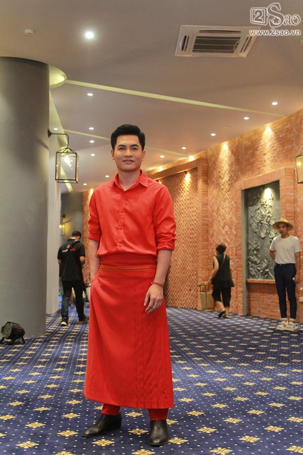 Anh còn mặc thêm chiếc váy dài tạo điểm nhấn.