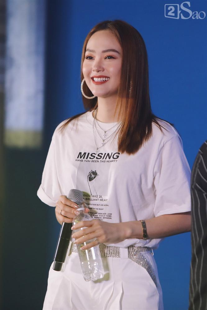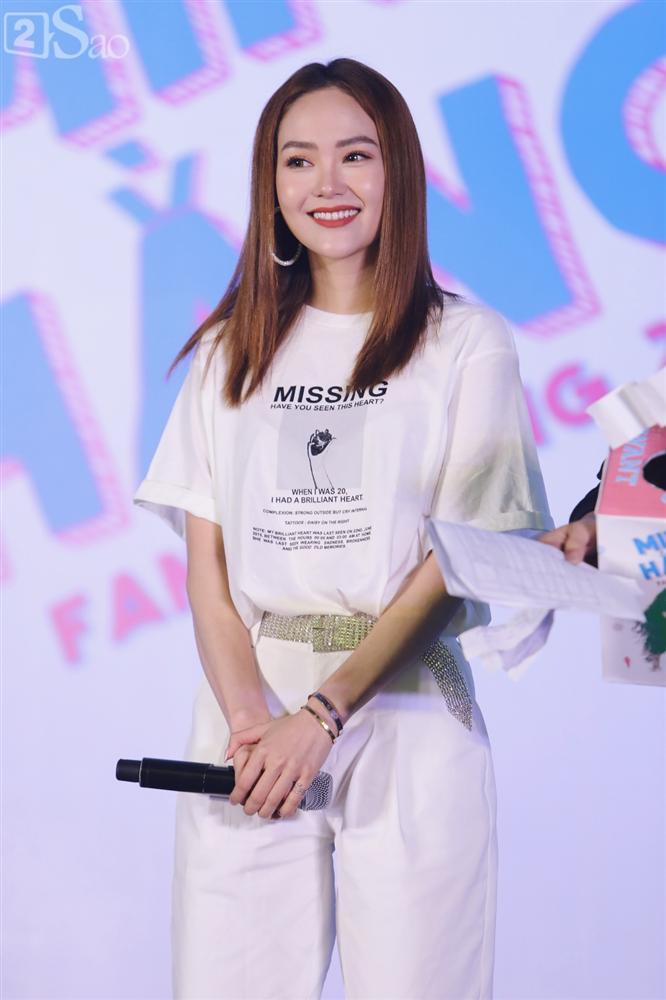Không cầu kỳ trong cách ăn mặc, Minh Hằng diện một bộ trang phục đơn giản màu trắng đầy cá tính.