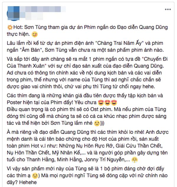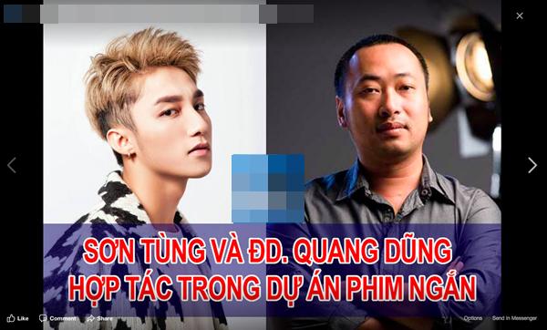 Thông tin Sơn Tùng và đạo diễn Nguyễn Quang Dũng hợp tác trong dự án phim ngắn được lan truyền khắp trên mạng