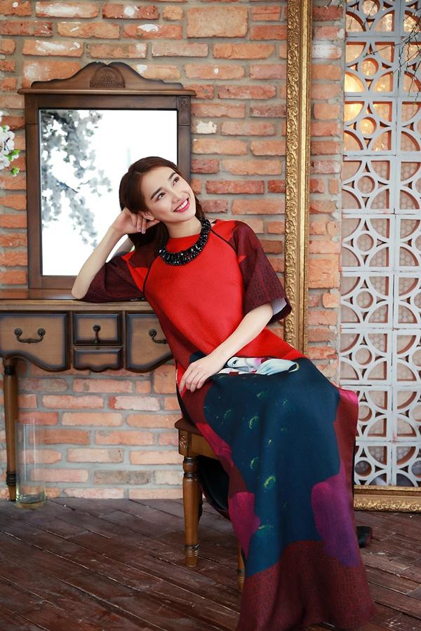 trông cô như một người con gái của gia đình. Cũng tông màu đỏ, nhưng hình ảnh tiếp theo được biến hóa xinh đẹp