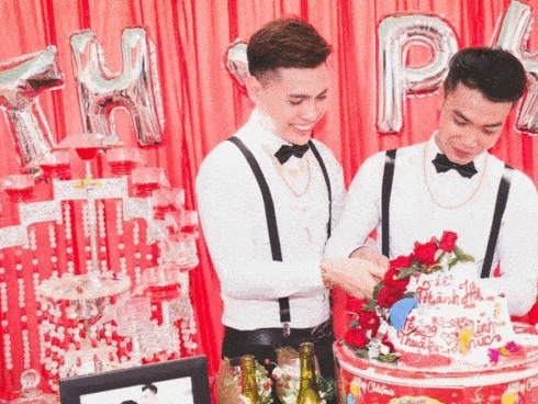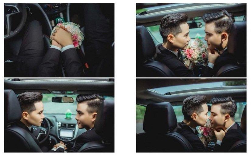 Quốc Khánh - một trong hai chàng trai cho hay họ biết nhau một thời gian trước khi tiến tới hôn nhân."Để có một đám cưới như vậy, chúng mình phải trải qua không ít gian nan, thử thách. Khoảng thời gian tìm hiểu không quá dài nhưng cũng đủ để cả hai thấu hiểu, tin tưởng lẫn nhau. Tình cảm không phải là trò đùa nên mình và Lợi rất nghiêm túc, trân trọng", chàng trai trẻ chia sẻ thêm.