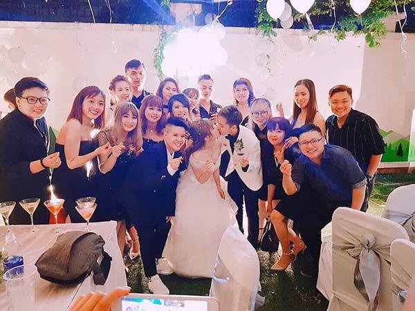 Sau đám cưới tại Mỹ, ngày 15/6 cả hai tổ chức báo hỉ lần 2 trong 1 biệt thự sang trọng có hồ bơi ở TP HCM. Tham gia chúc phúc cho cặp đôi là rất nhiều người thân, bạn bè.