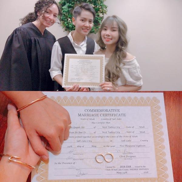 Trước đó vào ngày 24/5, Di Bảo và Quỳnh Nhi gây chú ý khi công khai là vợ chồng hợp pháp. Theo đó, trên trang cá nhân hai người đã chia sẻ niềm vui khi nhận giấy hôn thú hợp pháp tại Mỹ.