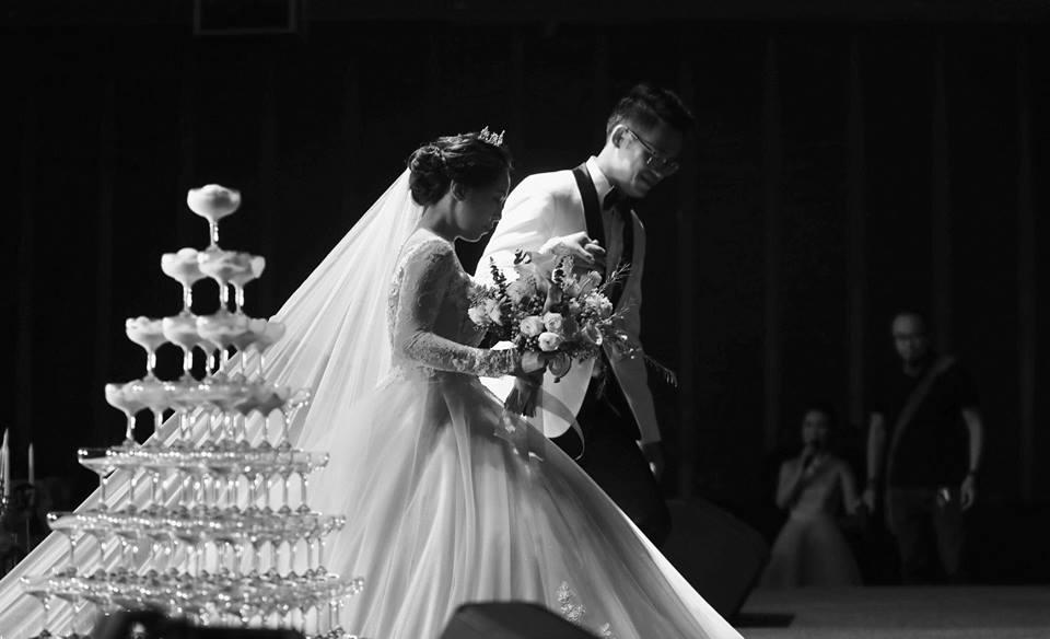 Đức Bảo điển trai sánh đôi bên vợ xinh đẹp trong đám cưới tối qua.