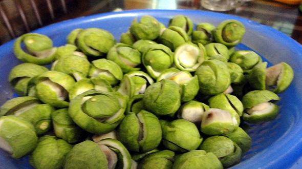 Bước 1: Quả sấu gọt vỏ, rửa sạch.