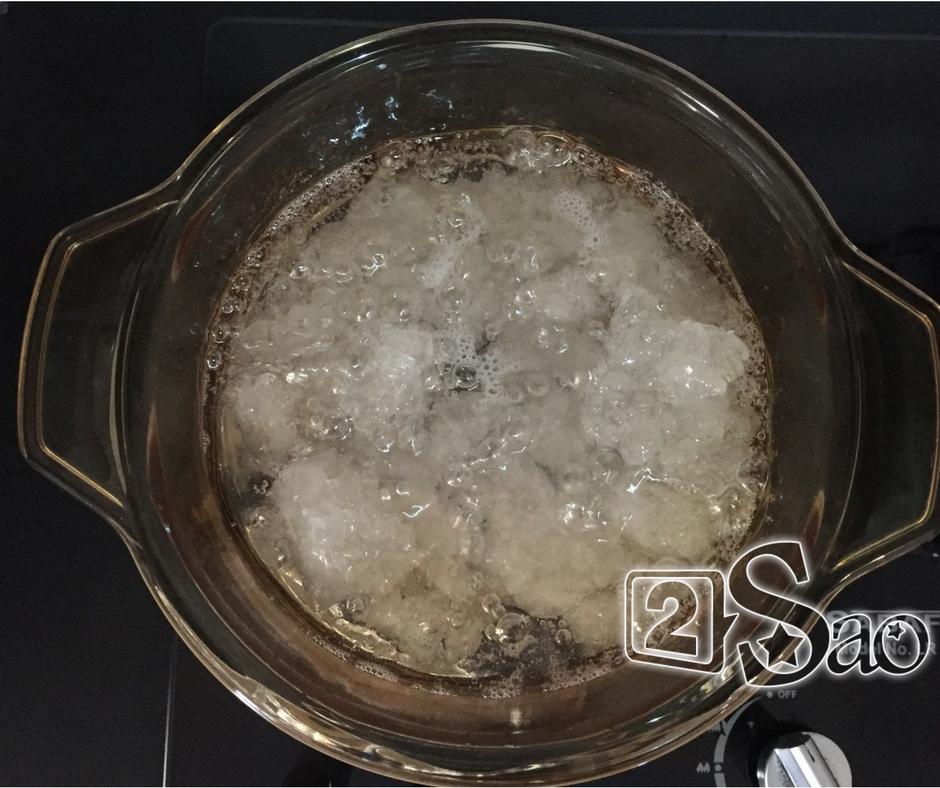 Bước 3: Cho đường cùng bát con nước vào đun, đến khi đường tan hết là được.