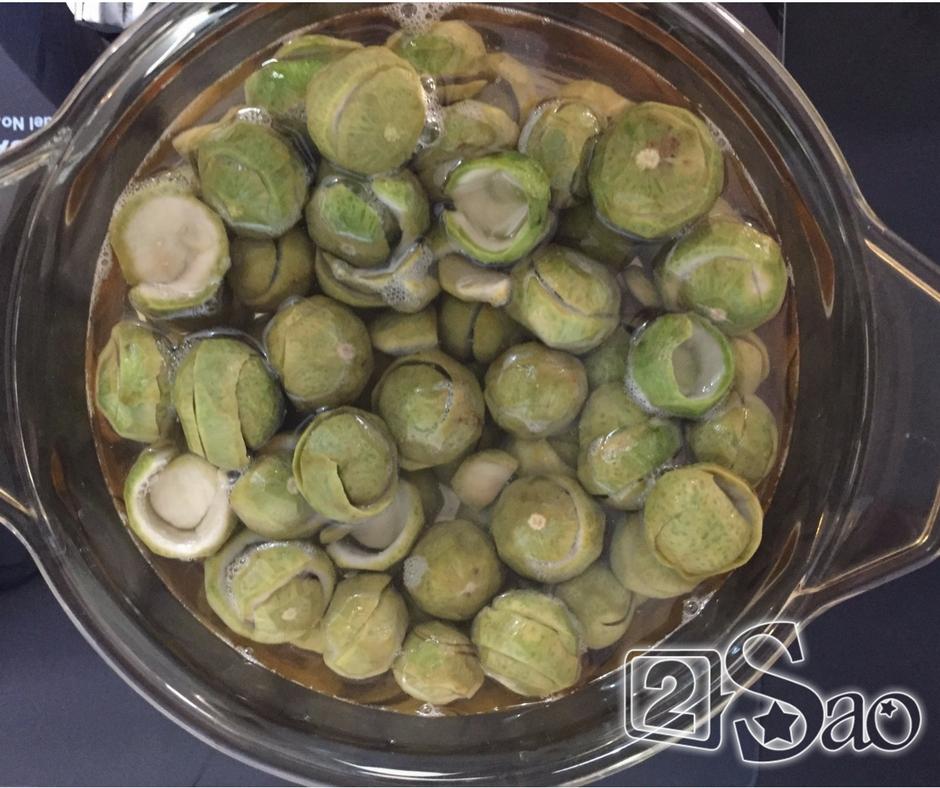 Bước 4: Chần sấu qua nước sôi (công đoạn này cần phải làm nhanh tay không sấu sẽ bị chín ), vớt ra, để khô nước.